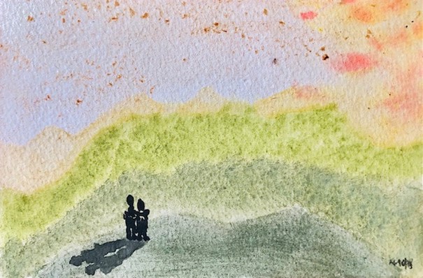 Bestimmt haben auch Sie schon das Wohlbehagen eines gemeinsamen Standpunkts erleben dürfen. Hier ziehen wir die tiefe Freude am Einklang, an der Harmonie der Lust am Streit vor, oder dem intellektuellen Genuss am kontroversen Dialog. Wie schön die Aussage „wir haben einhellig den Standpunkt…“ sein kann, zeigt Ihnen ein kleines Aquarell, das aus einer solchen Situation spontan entstanden ist.